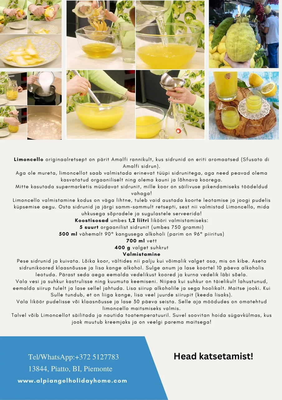 limoncello valmistamise töötoas ja oma käega kirja panna perenaise autentse retsepti.
